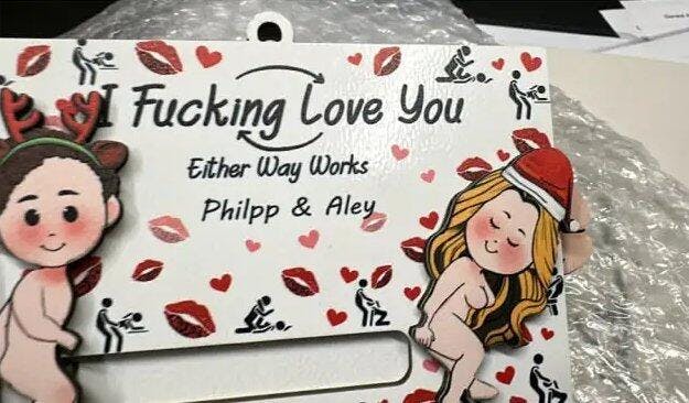 365Gifty personalized couples ornament with playful characters and romantic message I Fucking Love You